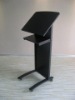 Name: Lectern Application places: School host, TV show, office meeting, ect any place that there are speeching, meeting and awarding party Structure and Material: The stands frame are steel, and the component board are wood or plastic, the color can be black like the displaying picture, but also can be other color. There are the wheels with brakes, which can be movedand stopped easily and keep stable Feature: Mobile: Simply and truly mobile, the lectern is ideal for facilities where flexiblity of conference location is of prime importance <1>: A simple lectern that has the advantage of wheels(2 with brakes) <2>: Choice of panel front with black or dark red color <3>: Arc supporting legs <4>: Easy self assembly <5>: Easy to move and portable Design points: humanized and considerable design <1>: Height adjustment: we put some handle or automatic height adjustment for considering the height difference which can avoid the inconvenience and embarrased when making speech for many people at the same time <2>: We can put some flipchart armson both sides, the flipchart arms can be flexible whenever you want to use or not, long or short. The arms are magnetic for you to stick <3>: We can put some felt board inside it at back, so if you want to show something only to yourself for reminding, it will be the best thing to keep the secret Price: Now we are running a good price policy which is the new customer can get a very welcomed discounts for the first order. And We have confidence that you will get maximized benefit with our high quallity and competitive price Picture showing: